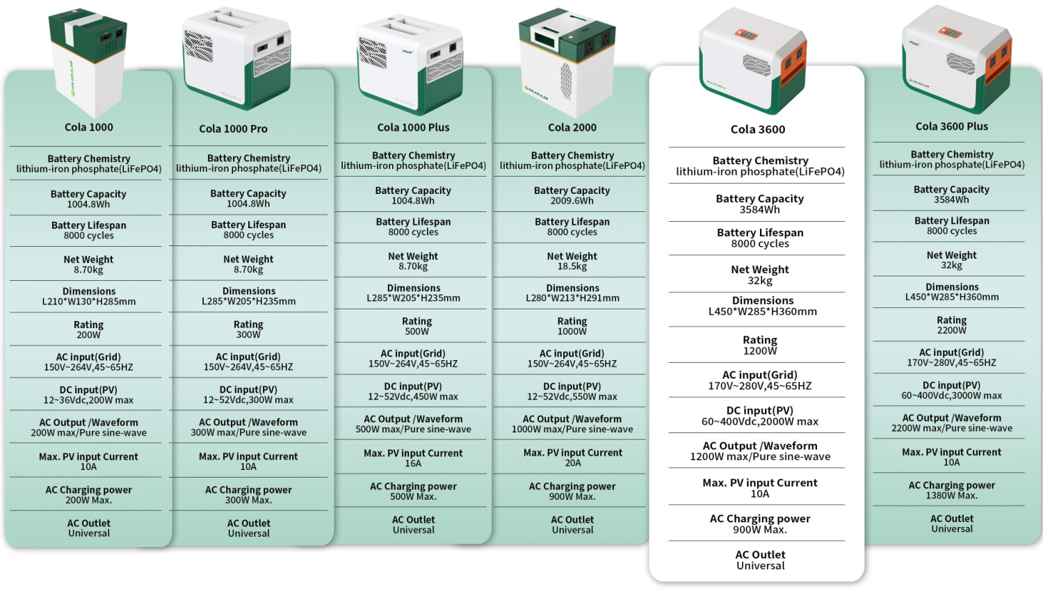 The Cola3600 Solar is a high-performance portable power station designed to deliver reliable and efficient energy for a wide range of applications. With its robust lithium-ion phosphate (LiFePO4) battery chemistry, the Cola3600 offers a substantial 36,000kwh capacity and a 1,000W rated power output, making it ideal for outdoor adventures, emergency backup, and off-grid power needs.