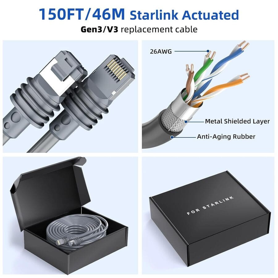 Câble Starlink Gen 3 (150 pieds / 46 m), extension de câble Starlink étanche pour Starlink Standard Actuated Gen 3 / Satellite V3, câble Starlink Ethernet de rechange Gen 3